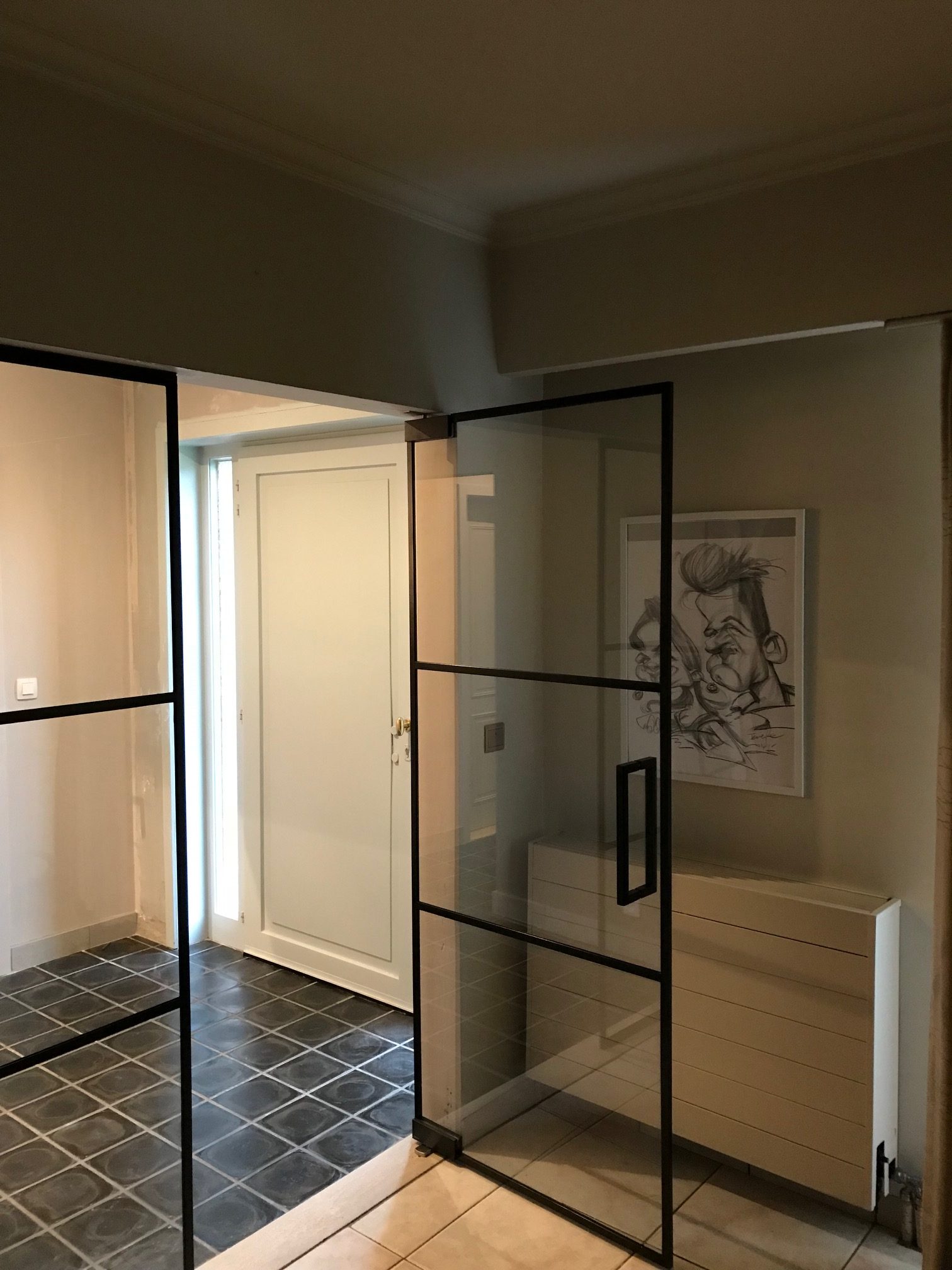 steellook deur met deurtrekker die doorloopt in profielen ( work in progress). foto2 -