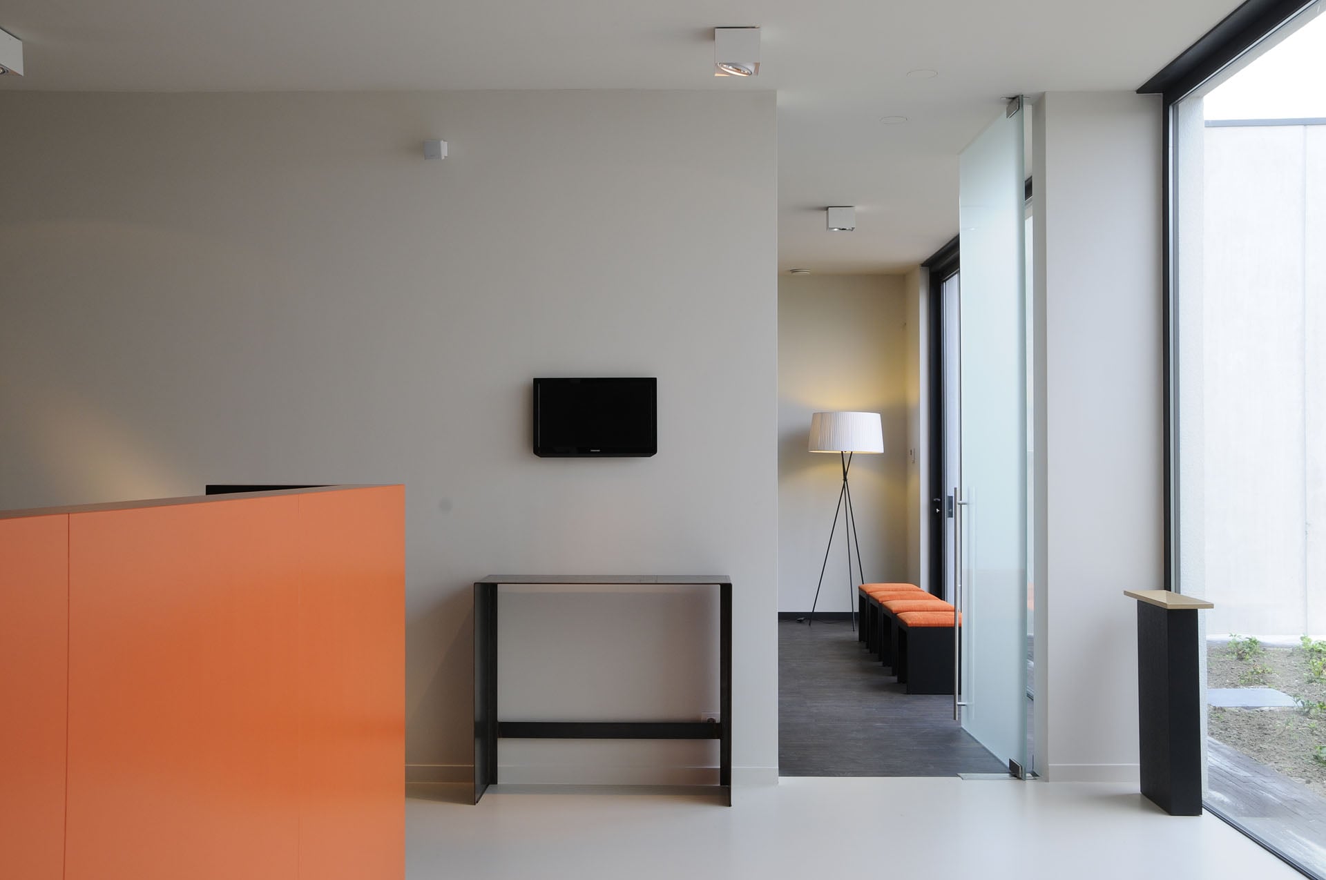 Kantoor wanden en deur in deurkader wit met deurdranger -