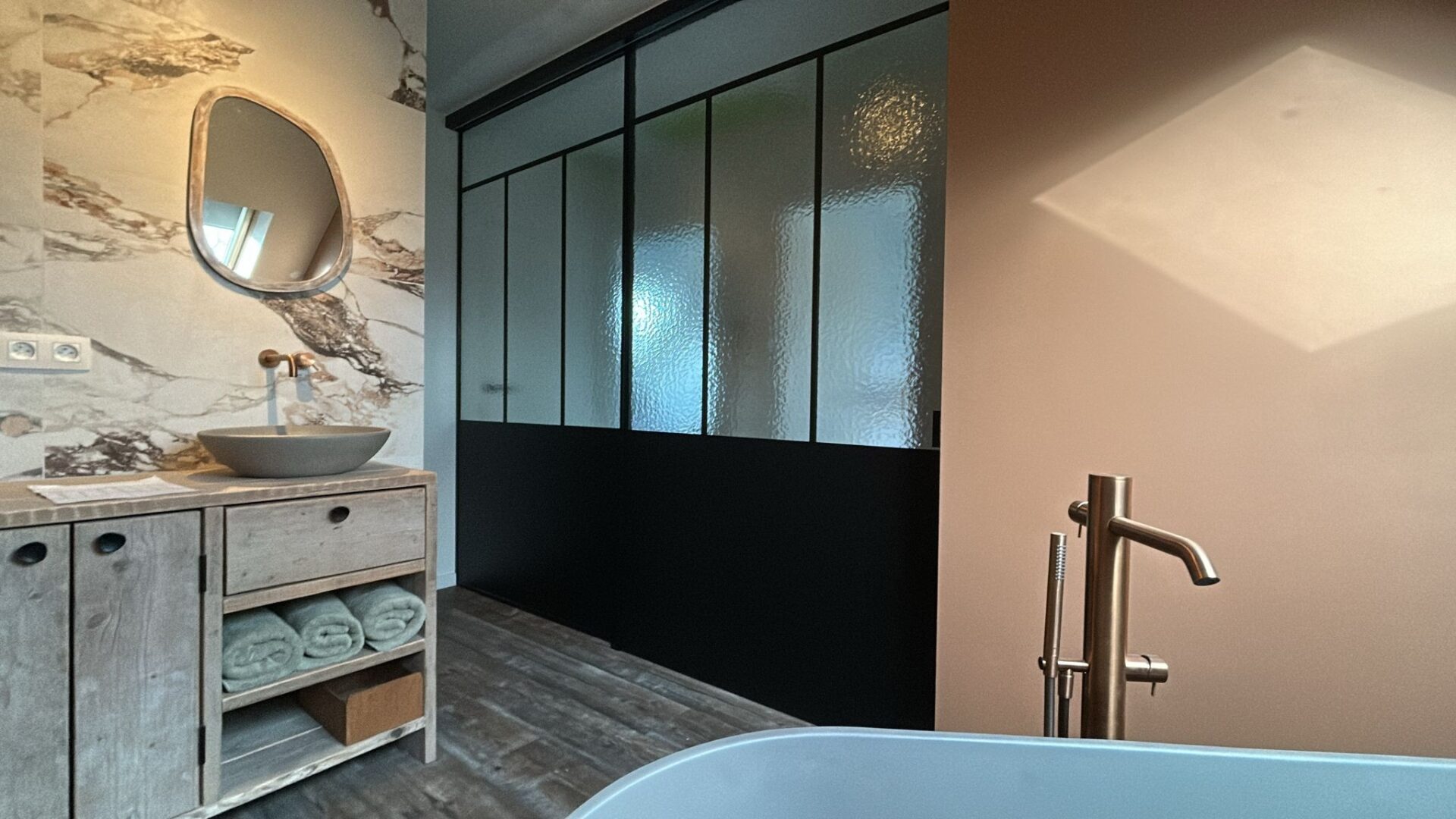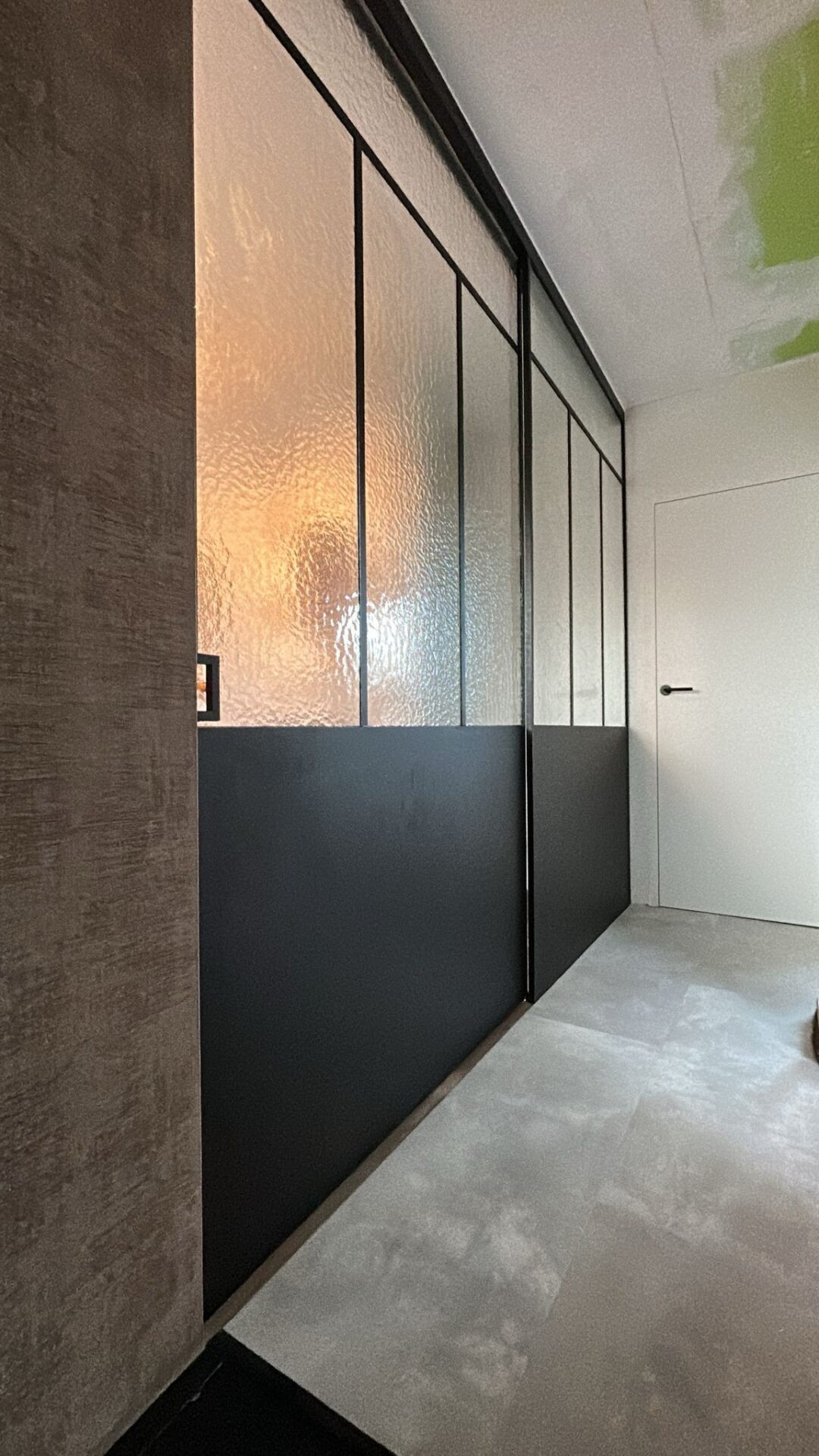 schuifdeur wandmontage met kathedraal glas steellook